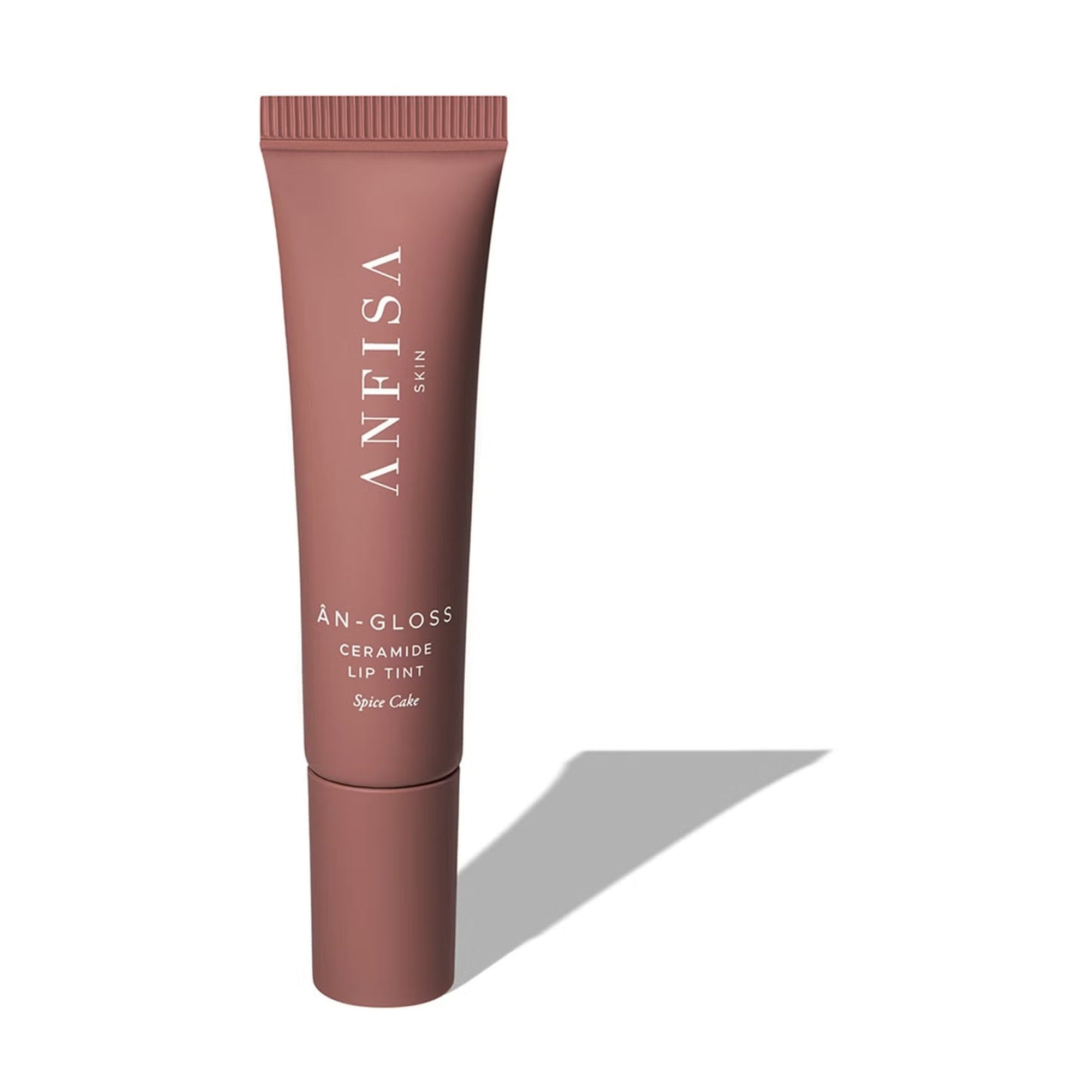 Meet Spice Cake: The award-winning ÂN-GLOSS formula, in a sheer, rosy brown lip tint. Powered by CeraBind TechnologyTM and infused with five skin-identical ceramides and two plumping peptides, it deeply hydrates and enhances fullness, while Cooling Tip TechnologyTM soothes on contact.